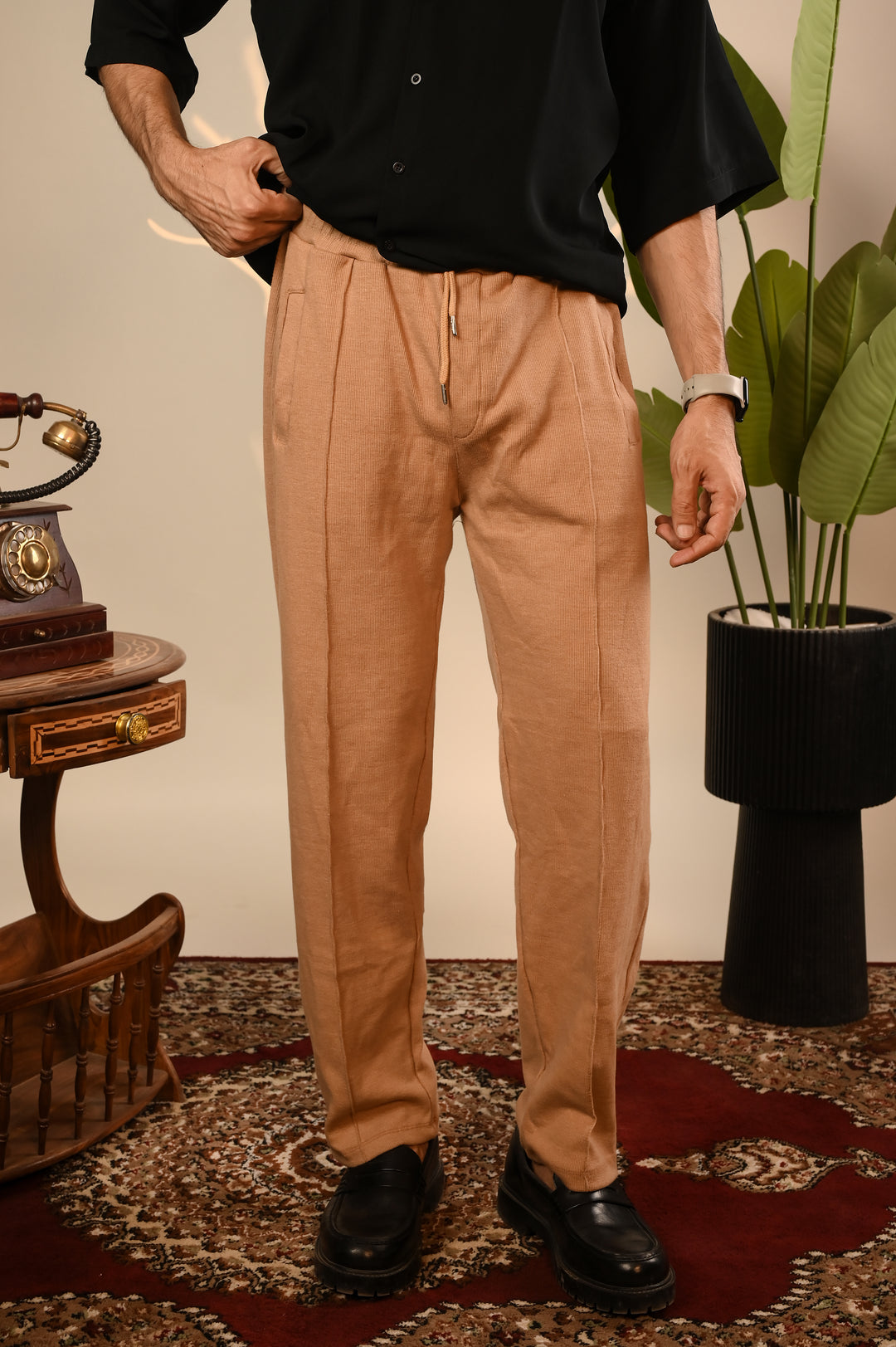 Brown Ribbed Knit Trouser