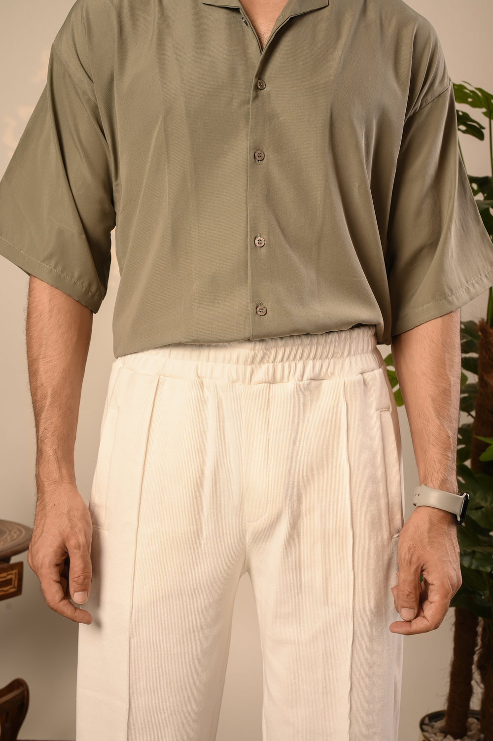 Light Cream Oversized Cuban Collar Shirt