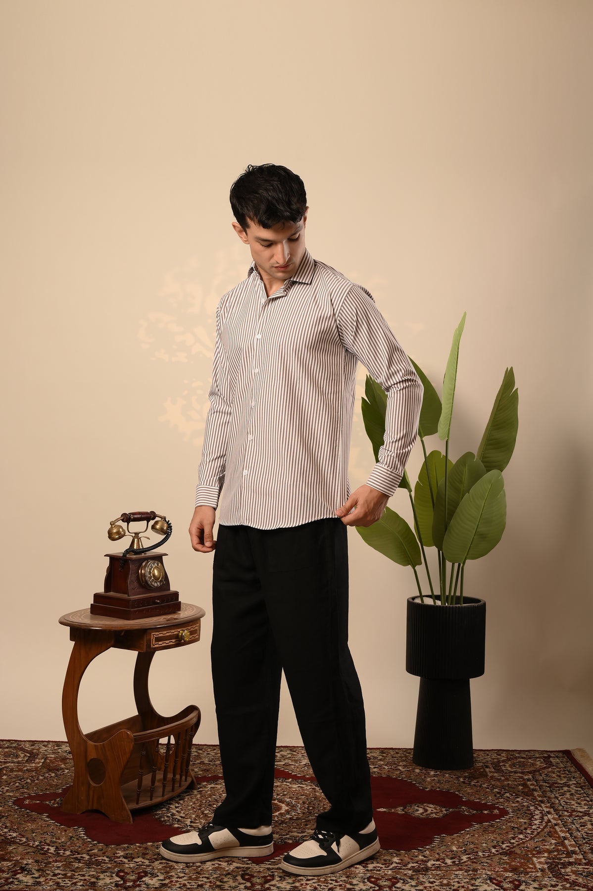 This stylish shirt features a classic brown base adorned with crisp white stripes, offering a sophisticated yet casual look. Crafted from comfortable cotton fabric, it's perfect for a variety of occasions.