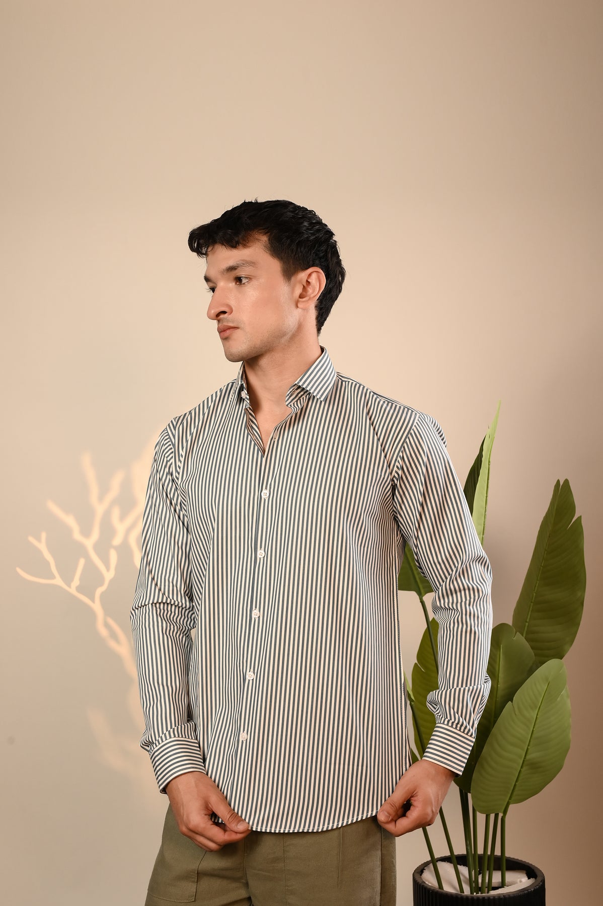This stylish shirt features a classic green base adorned with crisp white stripes, offering a sophisticated yet casual look. Crafted from comfortable cotton fabric, it's perfect for a variety of occasions.